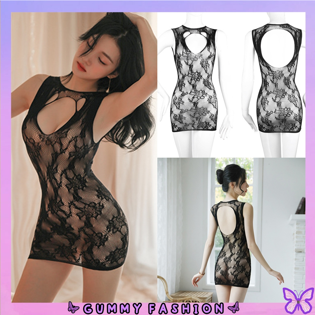 1. •GUMMY• BT1342 Pakaian Lingerie Sexy Model Renda Motif Bahan Lace Eksotis G String Dress