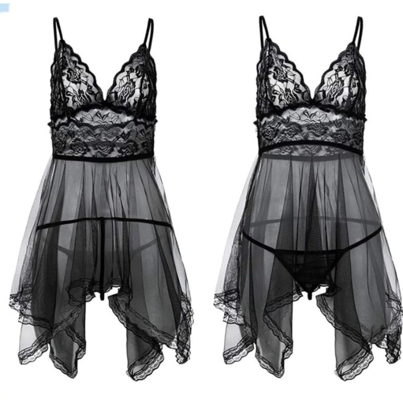 UNNY.ID Baju Tidur Wanita Import Model Terawang Renda Lingerie Pakaian Sexy